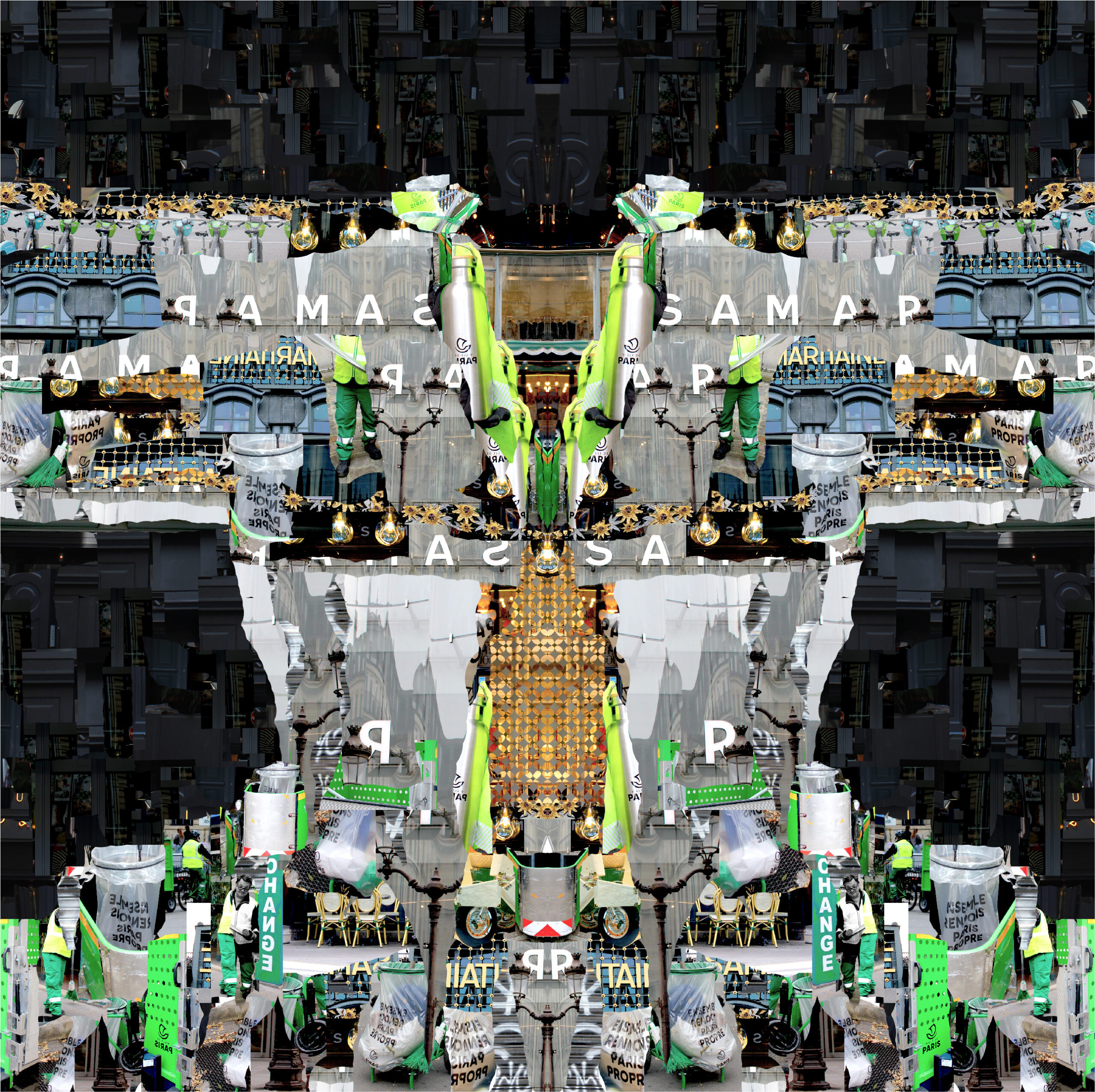 Une petite quinzaine d’années après, il se plonge dans des capitales pour y trouver sa matière première et commence ses Mixtures Urbaines. Mais ce n’est pas suffisant et l’idée en 2013 de projeter un symbole dans ses créations s’impose comme une évidence.